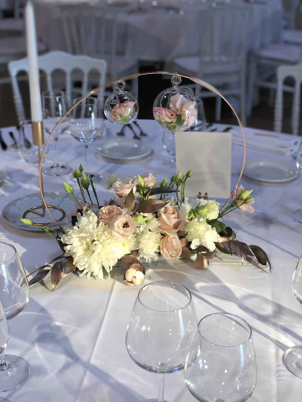 Au-delà des centres de table classiques, laissez-vous séduire par mes créations plus originales : chemins de table fleuris, marque-places végétaux.